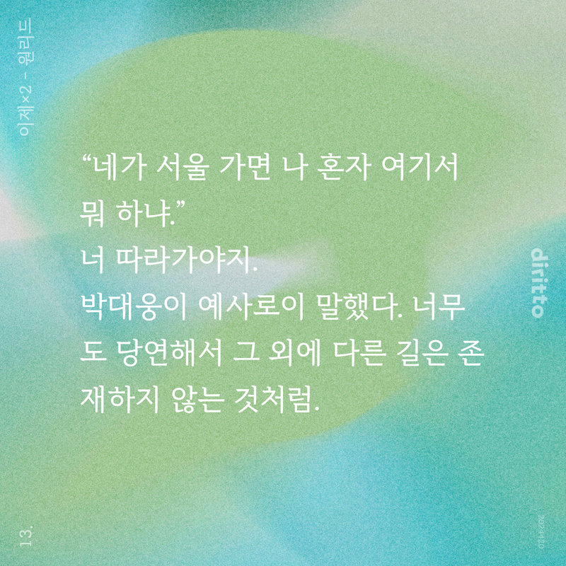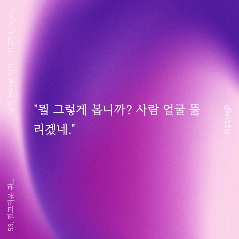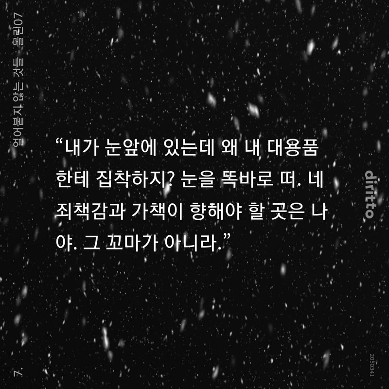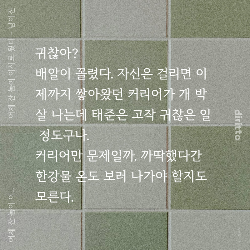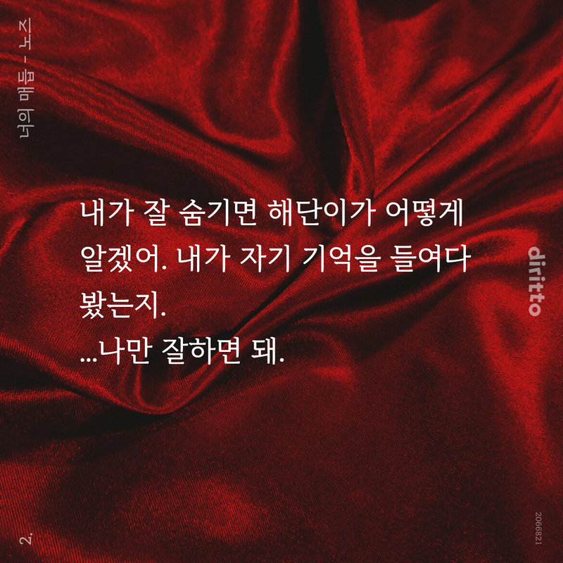 이상하게도 맥이 귀 바로 아래에서 뛰는 듯 욱신거렸고 목이 빳빳하게 굳는 기분이었다. 급격하게 빨라진 심박이 지나치게 의식되었으며, 급기야 숨까지 빠르게 차올랐다. 페이스를 잃고 꼬이고 엉키는 호흡이 점점 더 벅찼다.
