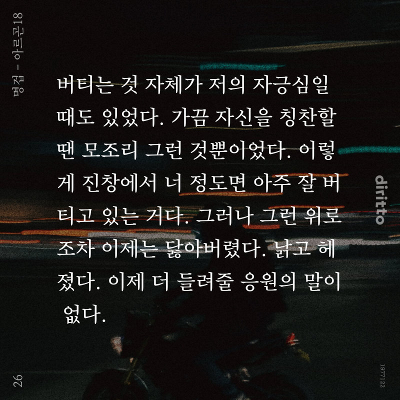 수능 끝났다고 편의점 가서 당당하게 담배 달라고 하는 애가 너 같은 애구나, 라는 눈으로 나를 보며 담배를 다시 수납하는, 같잖은 양심의 소유자.