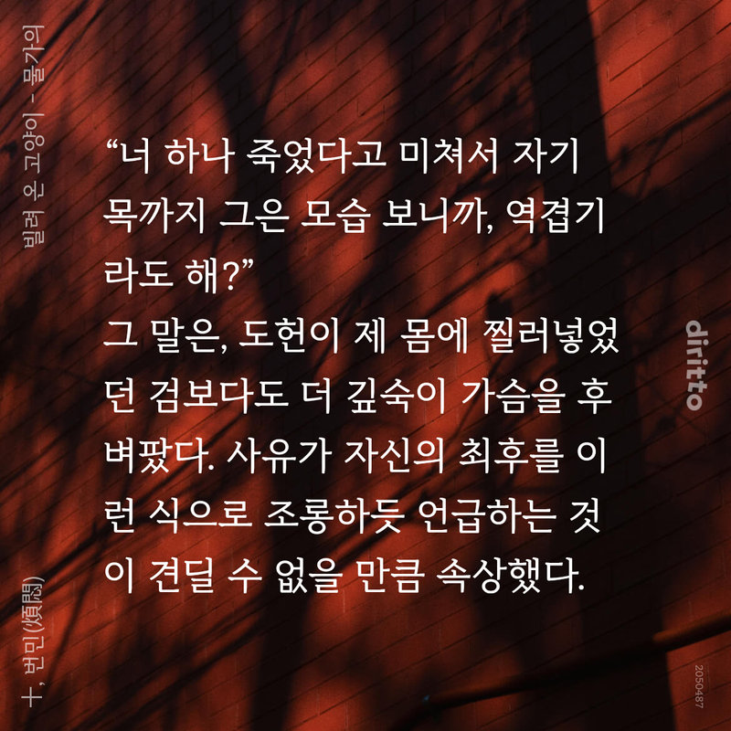 “넌 겁쟁이니까. 배라도 진득하게 맞추고 까발려야 또 못 튀지 않겠어요?”