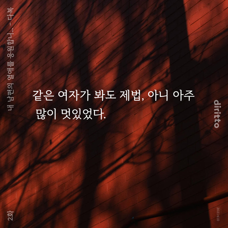 그런 이유도 분명 언젠가 까진 있었다. 하지만 알량한 논리는 시간의 파도에 침식되었다.